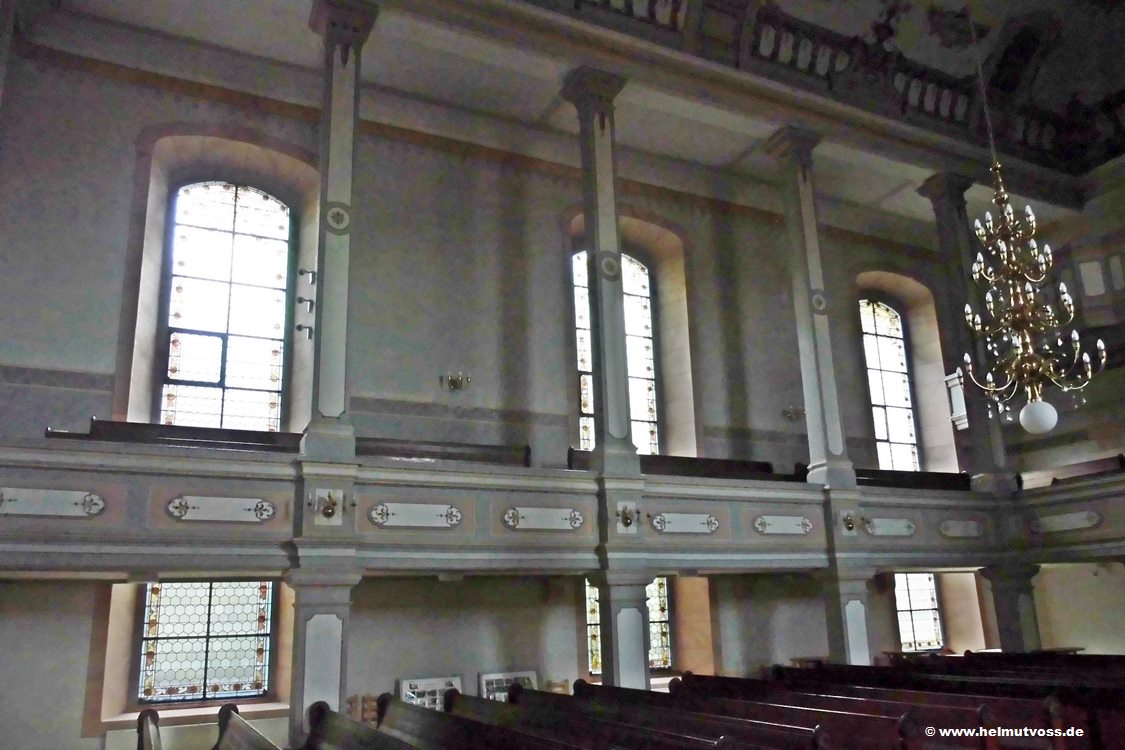 Auf der Empore das barockes Gehäuse der Johann Christian Pfennig-Orgel von 1766. Orgel von Hermann Eule, Bautzen (1898). Die Anzahl der Manuale 2, Pedal 1
