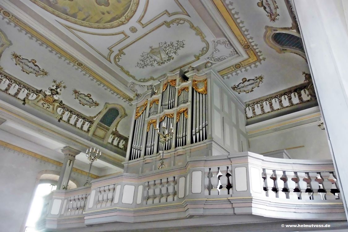 Die hölzerne Balustrade der Orgelempore wurde 1898 dem Barockstil angepasst.