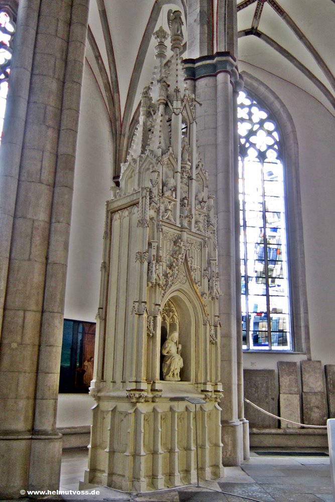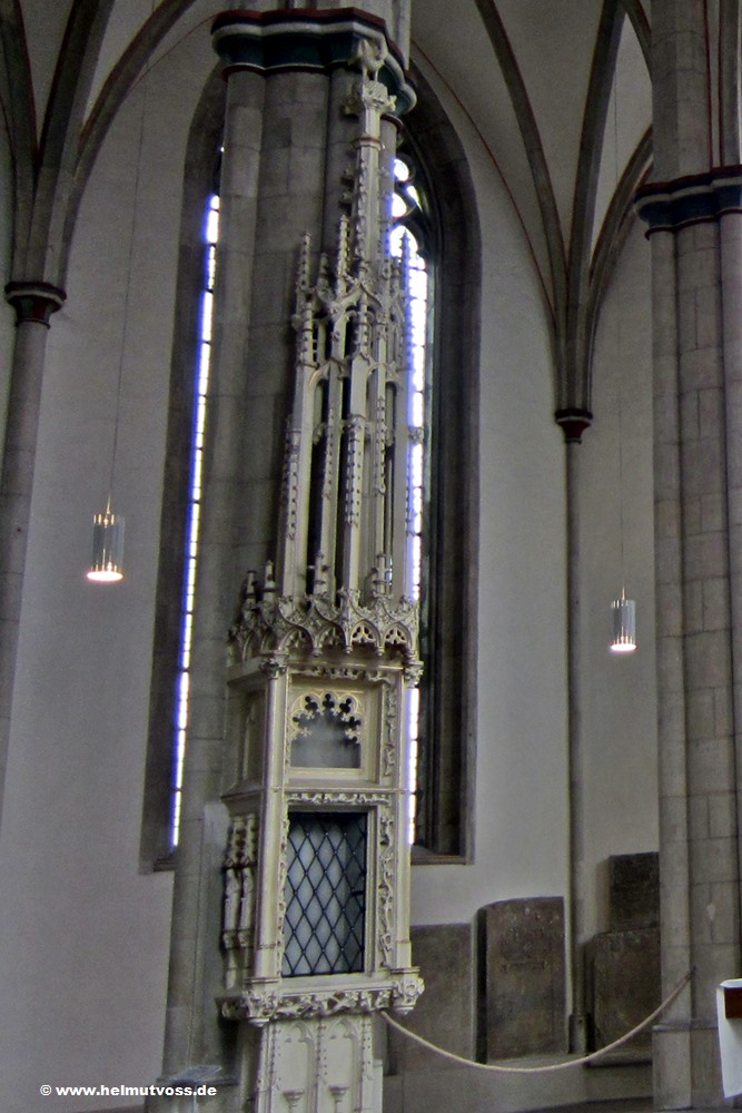 Bild 1: Sakramentshaus Anfang 15. Jahrhundert. Auf der Turmspitze ein Pelikan.