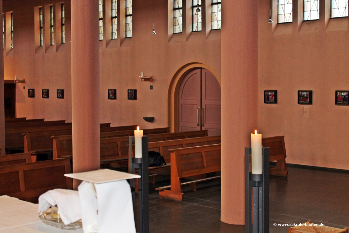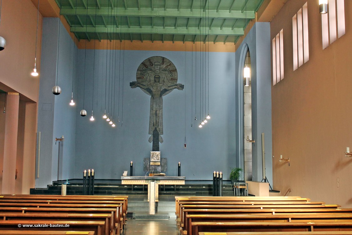 der im Zuge der Liturgiereform nachträglich nach vorne zur Gemeinde hin verlängert und mit einem neuen Altar versehen wurde. Der originale Blockaltartisch aus poliertem